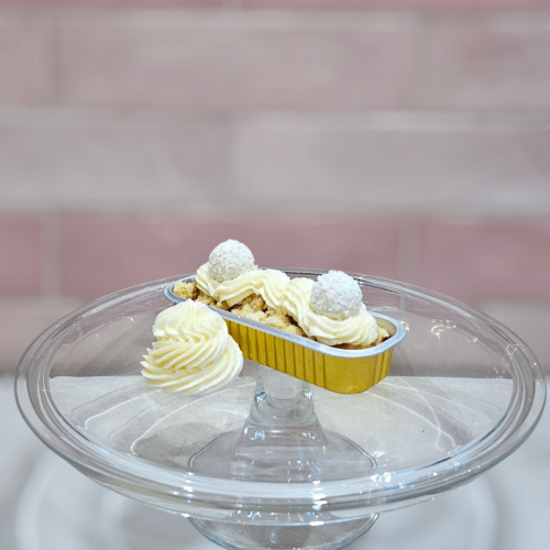 Een zachte gele cake, vergelijkbaar met red velvet maar zonder de cacao, met een romige frosting